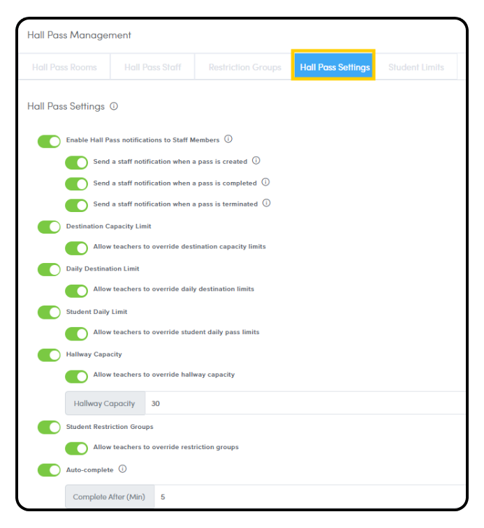 Hall Pass Settings