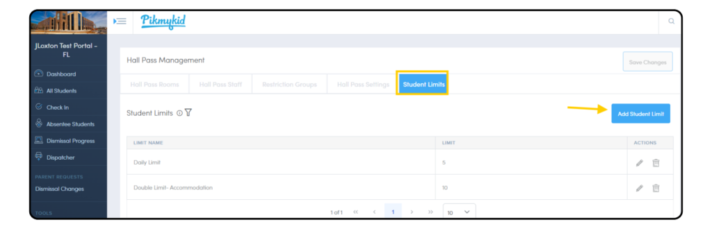 Daily pass limits can be set and managed from this page. Admin users can determine pass limits for large groups or for individual students based on school policies and specific student needs.